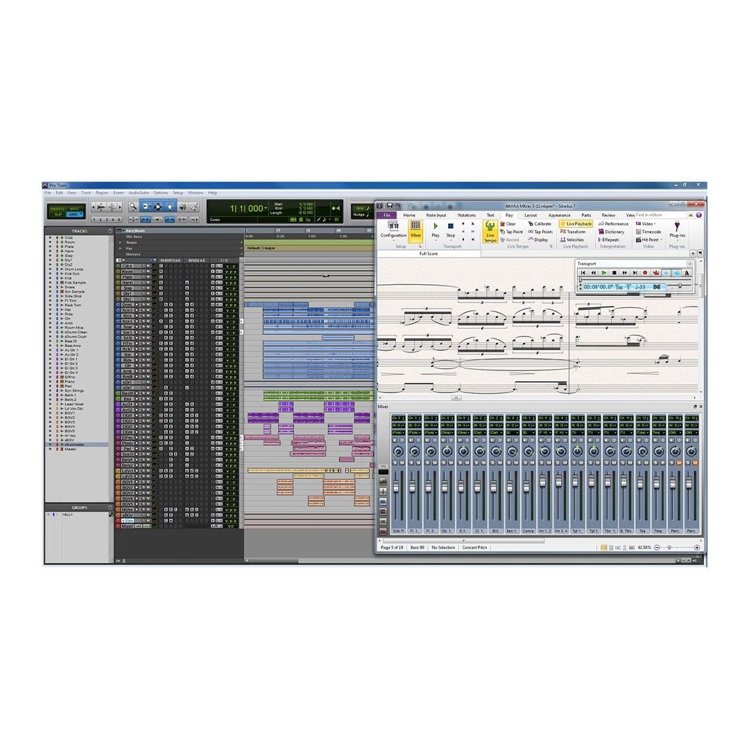 Sadece Sibelius'ta: Herhangi bir ses kayıdını canlı bir performans ekleyin veya notasyonlarınız ile birlikte senkron yürüyen kayıt alın. Tüm bunları Sibelius'taki Rewire desteği ile gerçekleştirebilirsiniz. Bu şekilde Sibelius'un playback'ini Pro Tools, Cubase, Logic ve GarageBand gibi programlar ile senkron çalıştırabilirsiniz.