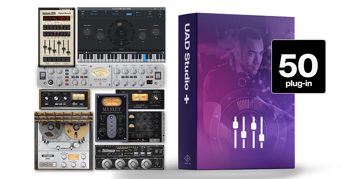 Essentials+ veya Studio+ sürümleriyle Auto-Tune, Fairchild, Teletronix ve daha birçok üreticiden gelen UAD plugin'leri kullanın.